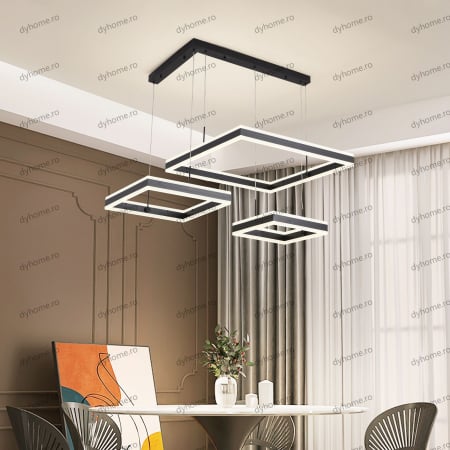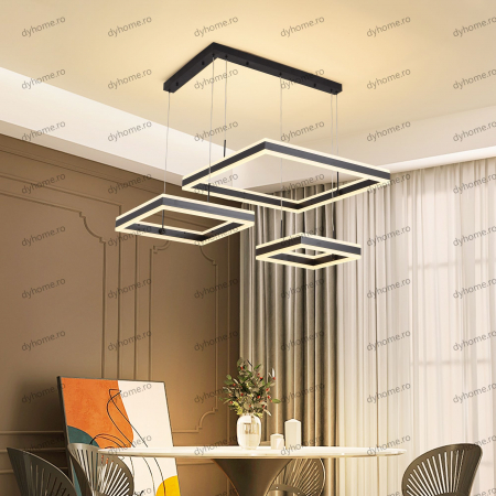 Candelabru LED patrat design negru cu telecomanda, dimabila, 416W
